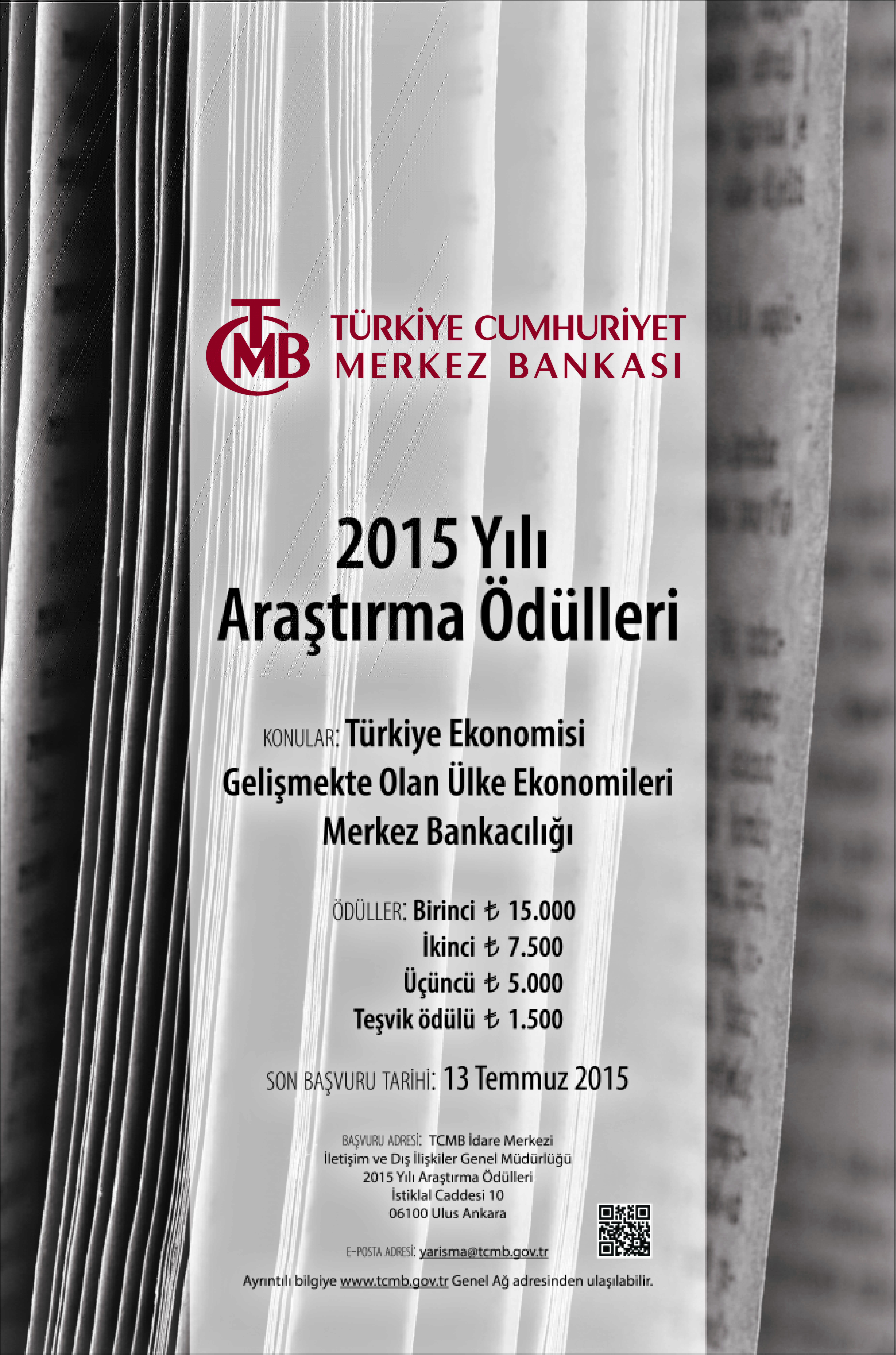 DUYURU - Türkiye Cumhuriyet Merkez Bankası (TCMB) 2015 Yılı Araştırma Ödülleri