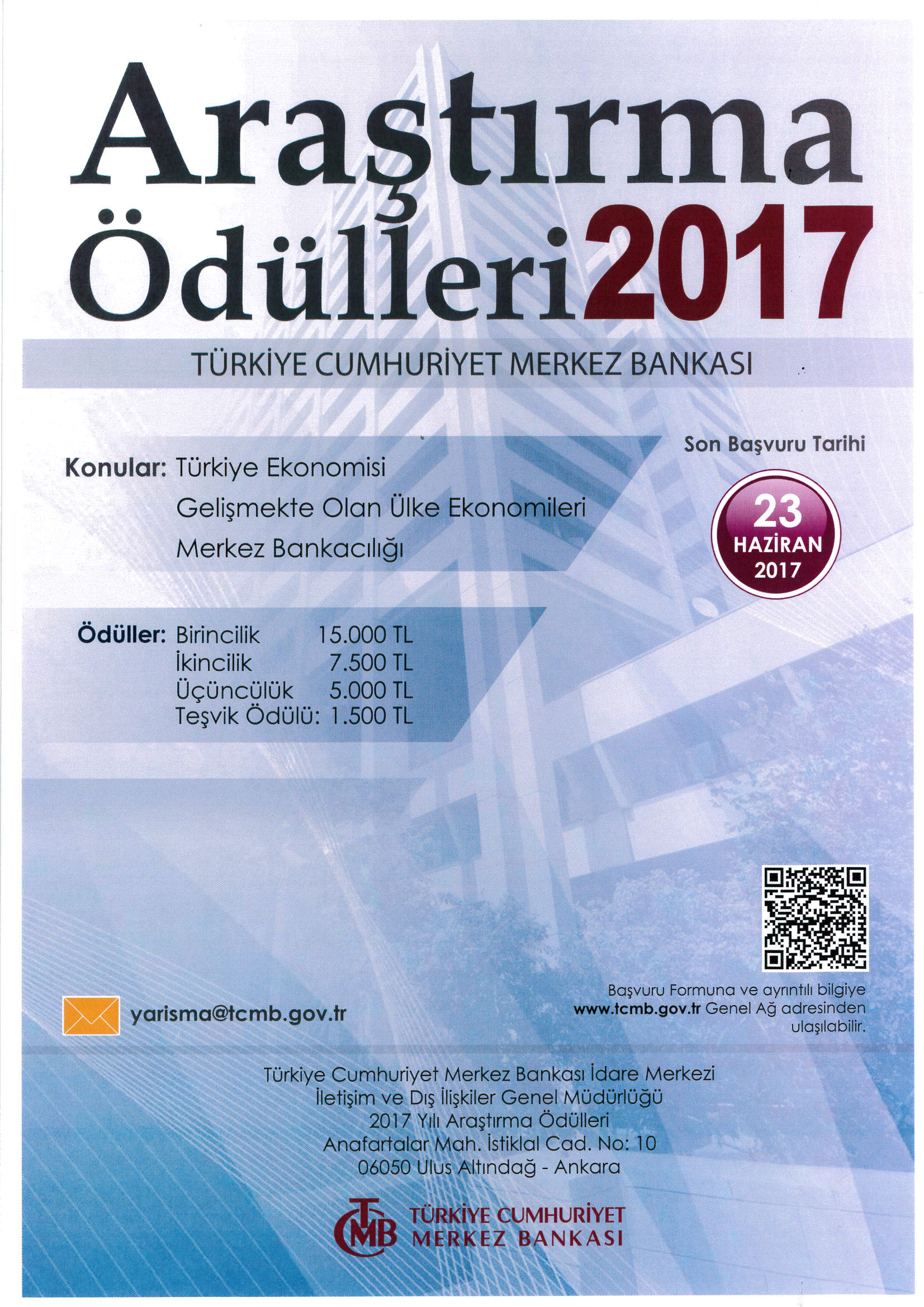 DUYURU - Türkiye Cumhuriyet Merkez Bankası 2017 Yılı Araştırma Ödülleri