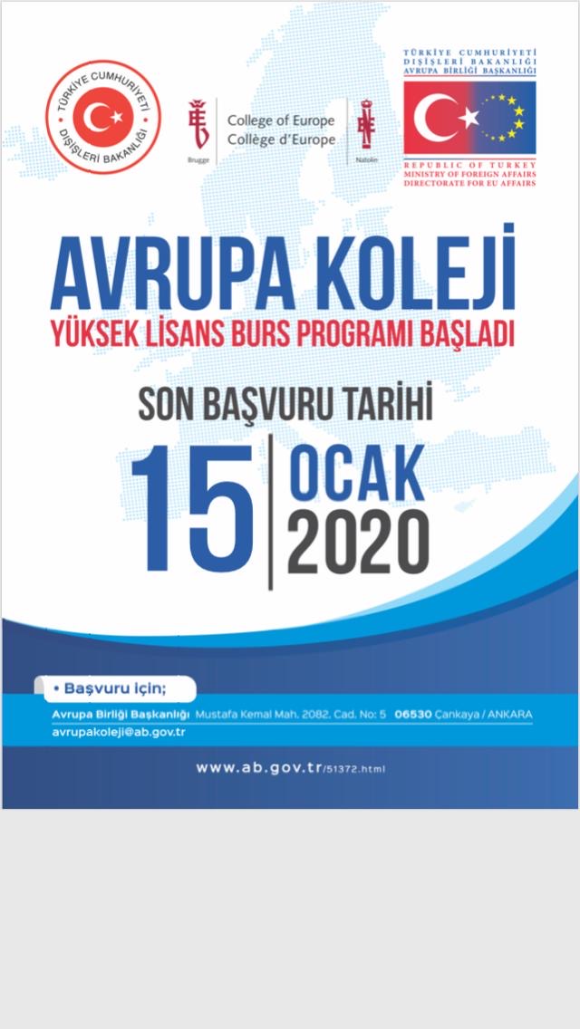 Avrupa Birliği Başkanlığı tarafından hazırlanan Avrupa Koleji Yüksek Lisans Burs Programı duyurusu ilişikte sunulmaktadır.