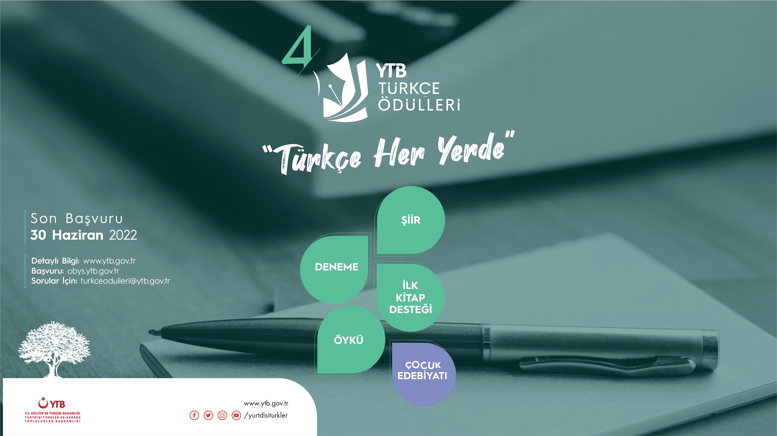Yurtdışı Türkler ve Akraba Topluluklar Başkanlığı (YTB) tarafından yurtdışında yaşayan vatandaşlarımıza yönelik olarak, yazın alanındaki yetenekleri keşfetmek amacıyla "YTB Türkçe Ödülleri" yarışması düzenlenmektedir. Yarışma; öykü, şiir, deneme, ilk kitap basım desteği ve diaspora çocuk edebiyatı olmak üzere beş kategoridedir.