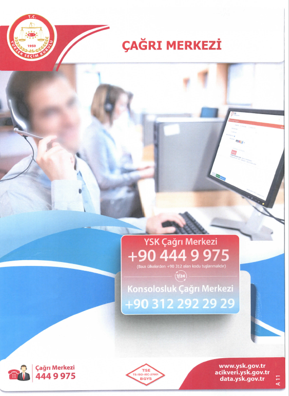YSK Çağrı Merkezinin iletişim bilgileri ekte sunulmuştur.
